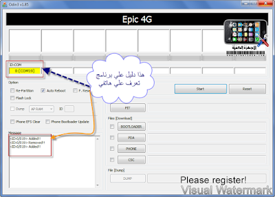 - االان اوصل جهازك بي كمبوتر و سوف تري ان برنامجOdin قد تغير و تعرف جهازك