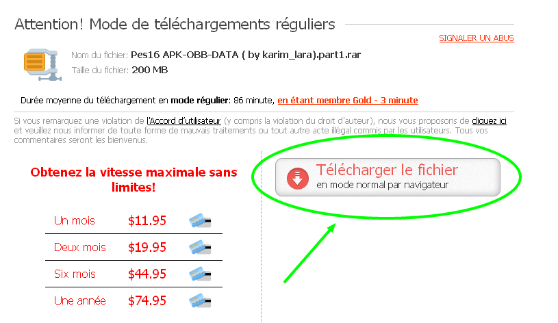 - الآن يمكنك التحميل فقط إضغط حيث تشير الدائرة الخضراء :