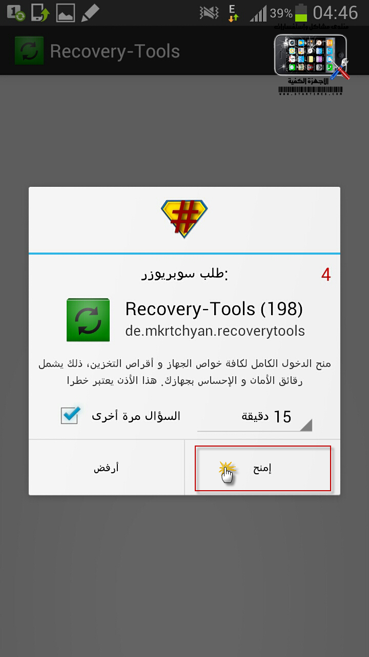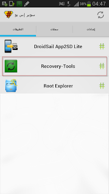 و كما تلاحظون ايضا ان اعطيت بتصريح للتطبيق Recovery Tools