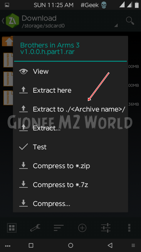 3. إذا كانت لديك اللعبة مقسمة لعدة أجزاء , إذهب إلى الجزء رقم 1 من الملفات التي حملتها، ستظهر لك لوحة الخيارات ، قم باختيار ( Extract to ./<Archive name/>)