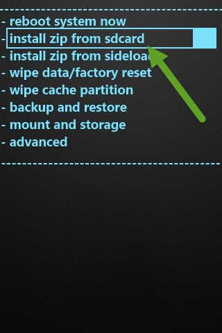 5- ادخل إلى خيار install zip from sd card .