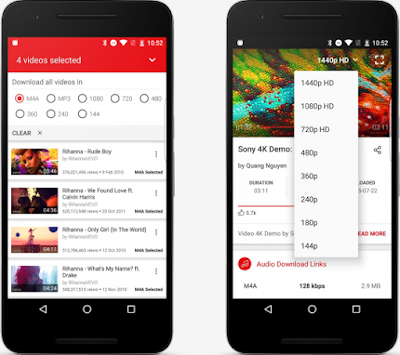 السلام عليكم ورحمة الله تعالى وبركاته ، تطبيق Videoder يُتيح لك تنزيل مقاطع الفيديو من خدمات مُختلفة إلى هاتفك، و ذلك عن طريق إضافة زر بجانب أي فيديو تشغله، و سيمكنك من تحميله بالجودة التي تريدها، و بالصيغة التي تفضل كما أنه يُتيح اختيار تنزيل الصوت فقط.