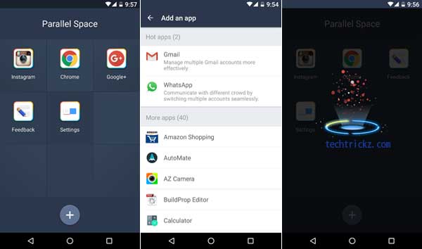 - بالاعتماد على حاوية التكنولوجية الفريدة، Parallel Space هو التطبيق الوحيد في Google Play الذي يسمح لك بتشغيل الحسابات المختلفة في نفس الوقت.