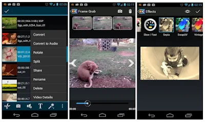 - تطبيق رائع يقدم تجربة فرييدة من نوعها في مجاله ، فهو عبارة عن أداة تعديل الفيديو تسمح لك بالعمل على أشرطة الفيديو الخاصة بك بالعديد من الطرق، مثلاً قص ملفات الفيديو الخاصة بك ، دمج الفيديوهات ٬ إضافة موسيقى للفيديو ٬ إضافة نص ٬إضافة تأثيرات ٬ عرض الشرائح ٬ التقاط صورة من الفيديو و المزيد من المميزات نترككم لإكتشافها .