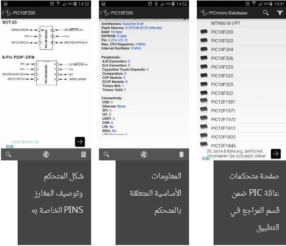 بعائلة PIC، أو نشرات فنية للرموز المختلفة للمقاومات والمكثفات والقيم