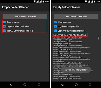 السلام عليكم و رحمة الله تعالى و بركاته. هل أنت منزعج من كثرة المجلدات الفارغة في مدير الملفات على هاتفك أندرويد؟ استخدم تطبيق Empty Folder Cleaner. بنقرة واحدة سيتم حذف جميع المجلدات الفارغة. كما يقدم لك أيضا خيارات متعددة لحذف المجلدات الفارغة.