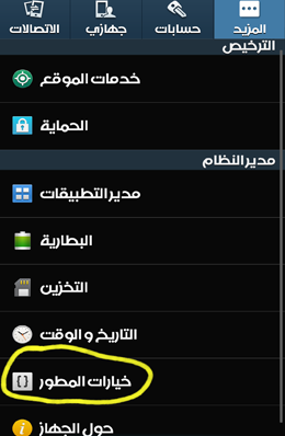 الأن إضغط على خيارات المطور حتى تقوم بالدخول إلى إعداداتها ، وشاهد الشرح بالأرقام لكل ميزة على حدة: