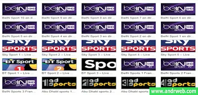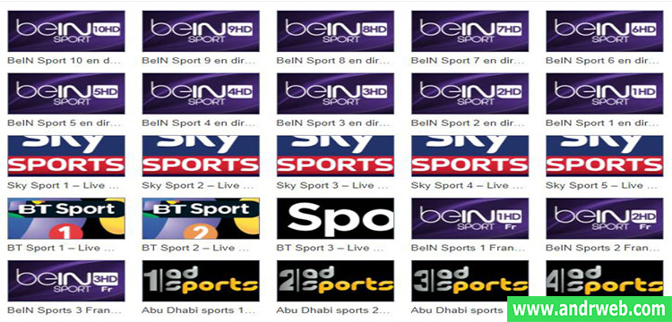 من بين القنوات التي يوفرها Sports TV نجد: كل قنوات بيين سبورت (BeIN SPORTS channels)، سكاي سبورت (Sky Sports)، بي تي سبورت (BT Sport)، إتش دي أرينا سبورت (HD Arena Sport)، أورو سبورت (Euro Sport)، والكثير من الباقات الرياضية العالمية الناقلة للدوريات الأوروبية والعالمية لمختلف الرياضات.