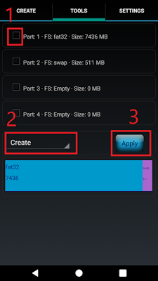 - ﺑﻌﺪ ﺃﺗﻤﺎﻡ ﺟﻤﻴﻊ ﺍﻟﺨﻄﻮﺍﺕ ﺍﻟﺴﺎﺑﻘﺔ ﻧﺘﻮﺟﺔ ﺍﻟﻰ ﻗﺴﻢ CREATE ﻭﻣﻦ ﺛﻢ ﻧﻀﻐﻂ ﻋﻠﻰ ADD ﻭﺑﻌﺪﻫﺎ ﻧﻘﻮﻡ ﺑﺴﺤﺐ ﺍﻷﻳﻘﻮﻧﺔ ﺍﻟﻰ ﺍﺧﺮﻫﺎ ﻭﺑﻌﺪ ﺫﻟﻚ ﻧﺨﺘﺎﺭ ﻣﻦ ﻗﺴﻢ Formate ﻧﺨﺘﺎﺭ fat32 ﻭﺑﻌﺪ ﺫﻟﻚ ﻧﻈﻐﻂ ﻋﻠﻰ APPLY ﻭﺑﻌﺪ ﺍﻟﻀﻐﻂ ستظهر لك نافذة جديدة وسيتوجب عليك النقر على كلمة Ok لكي يتم حذف كل الملفات الموجودة عل بطاقة الذاكرة الخارجية وعليك الانتظار حتى نهاية العملية، وكآخر خطوة يجب عليك أن تقوم بعمل إعادة تشغيل لهاتفك لتجد بأن المشكلة قد تم حلها.