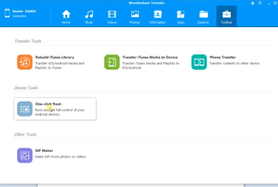- تقوم بالضغط على خانة ToolBox بعدها تختار خيار One Click Root :